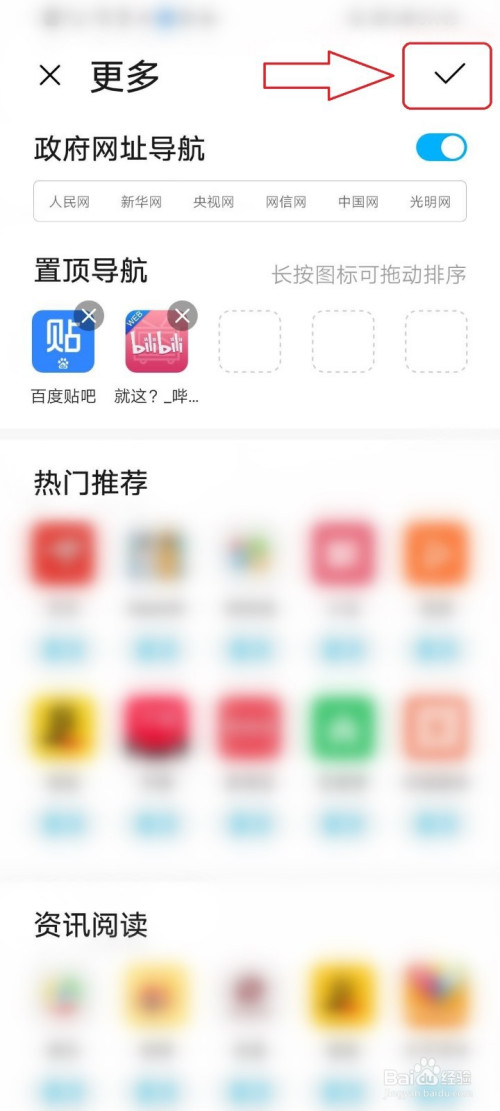 ●选择需要添加的导航,例如点击【百度贴吧】。