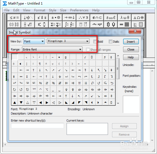在弹出的对话框中,将“查看”设置为“字体”以及“Wing dings 3”,其他连结默认,具体如图所示: