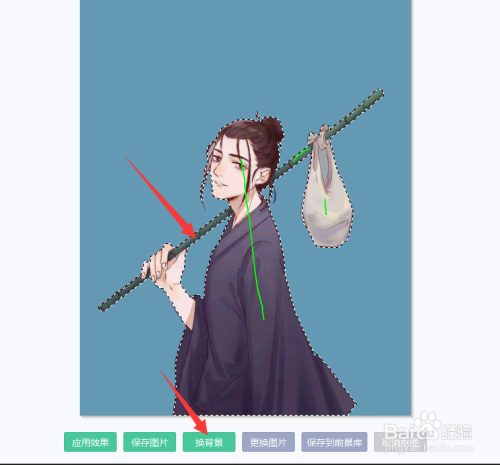 选择抠图区域,虚线内部为抠图保留区域,点击换布景;