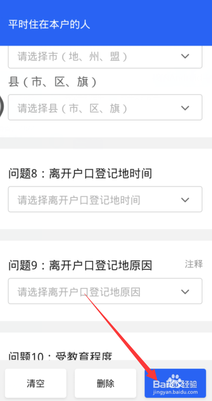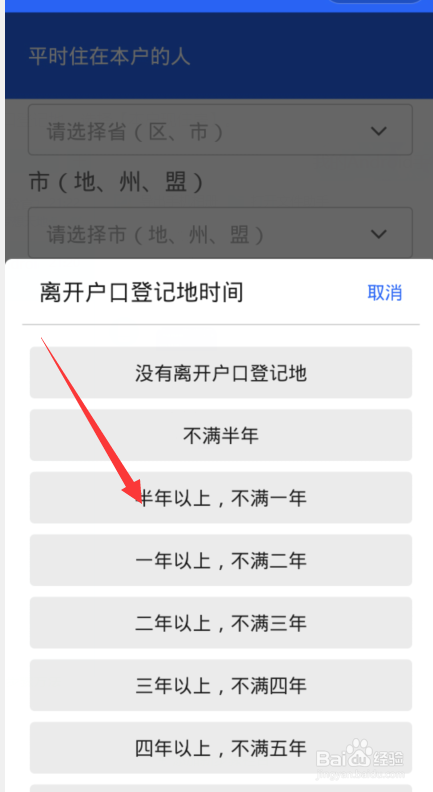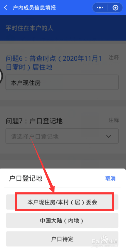 点击户口挂号地,选择【本户现住房】。