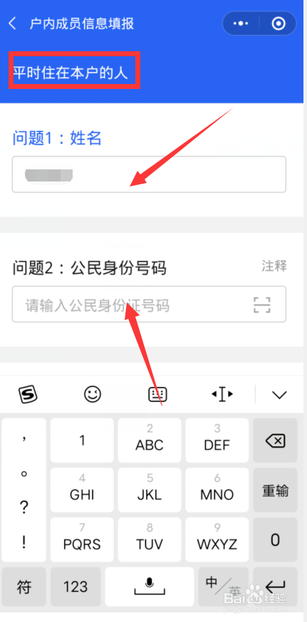 输入【日常平凡住在本户的人】小我信息。