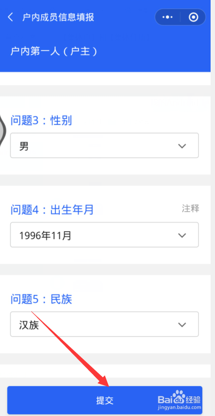 填写集体户口的户本家儿信息,点击提交。