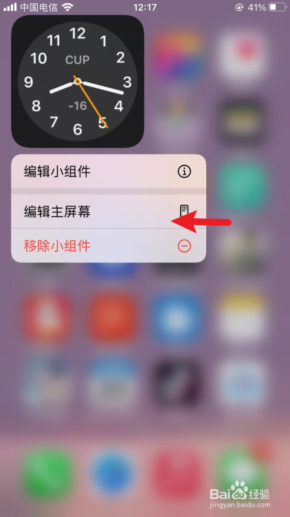长按需要删除的小组件,在弹出提醒内点击【编纂本家儿屏幕】选项。