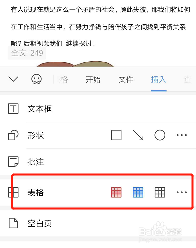 或者点击插入下的表格,也是同样可以的。