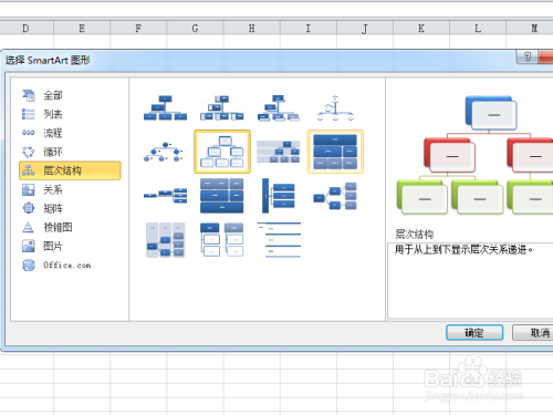 在SmartArt图形中选择“条理布局”中的合适类型,单击确定;