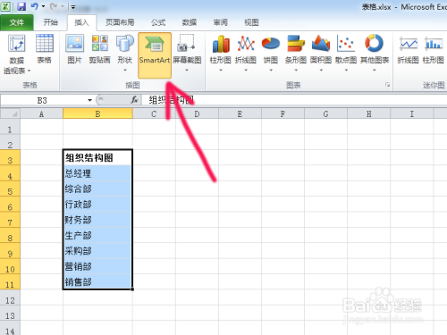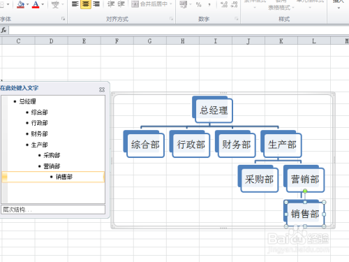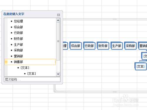在每个部分名称前按键盘上Tab键调节条理,每按一次,条理就下调一级,调整完当作了,单击表格空白处,架构图就绘制当作功了!