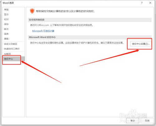 进入选项页面后选择【信赖中间】,点击信赖中间设置。
