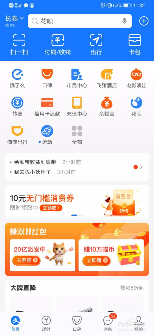 我们点击进入到支付宝的首页,在首页会看到一个市民中间,点击直接进入,若是没有在全数傍边也可以找到。