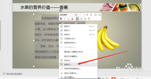 设置幻灯片的段落格局,鼠标右击,点击段落。