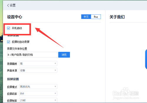 4.然后在设置中间处,选择勾选“开机启动”选项。