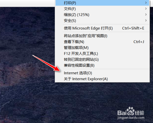 点击Internet选项