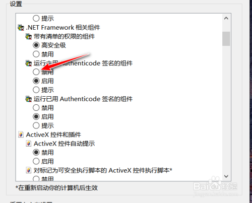 6.勾选禁用“运行未用Authenticode签名的组件"