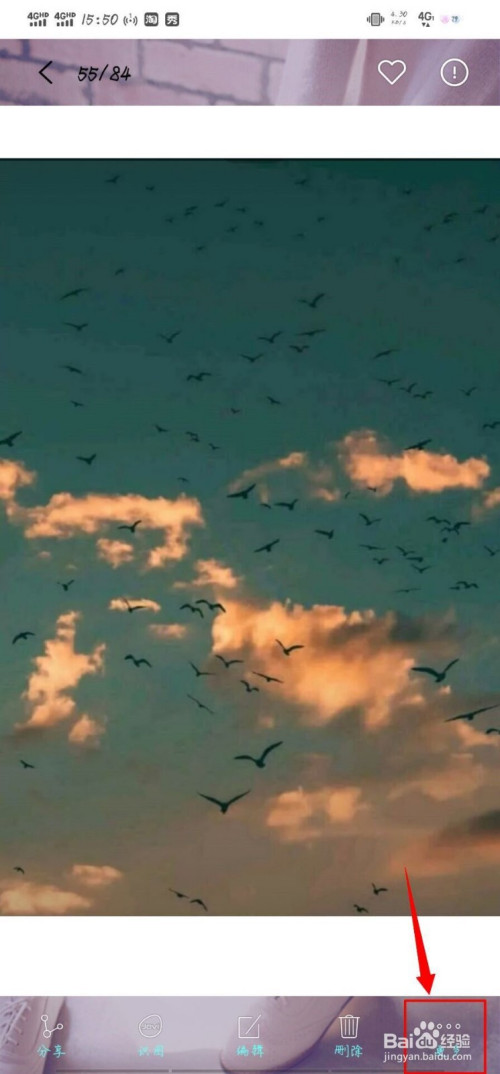 其次,我们在相册中选摘要设置壁纸的图片,点击【更多】。