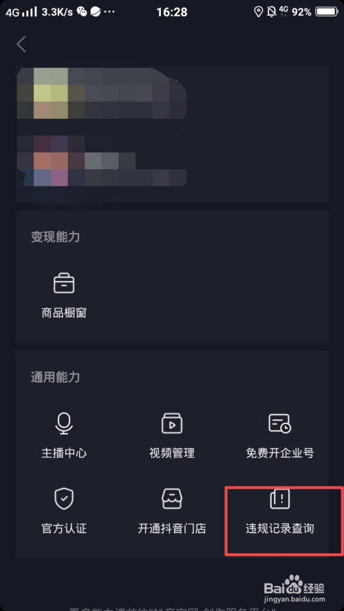 接着点击【违规记实查询】;