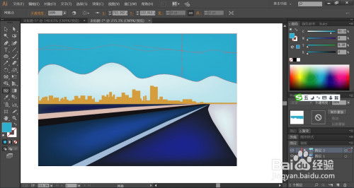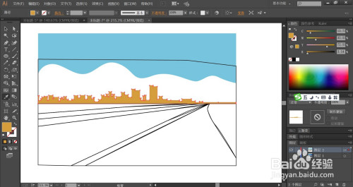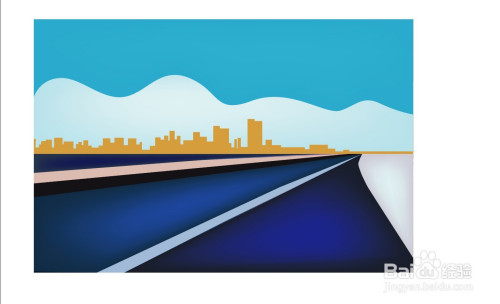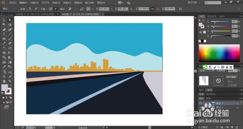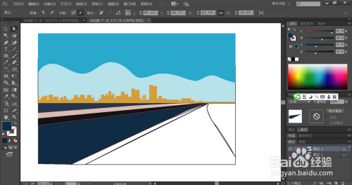 利用钢笔绘制出道路圆弧的左侧与右侧细节路径,让分歧的色彩布局呈此刻路径上面。