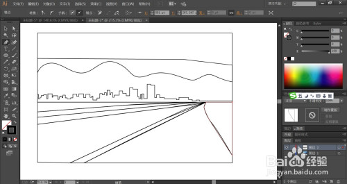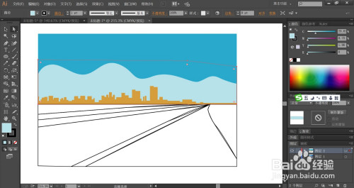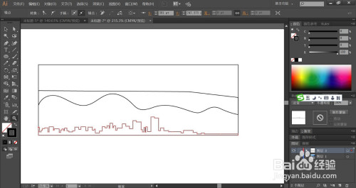 再画出天空下方的城市高楼轮廓,让凹凸升沉的楼层呈现天际线的结果。