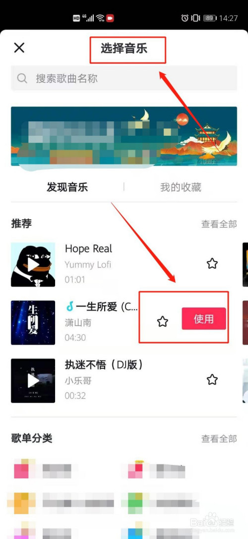 2.随后为拍摄视频选择布景音乐,点击“利用”。