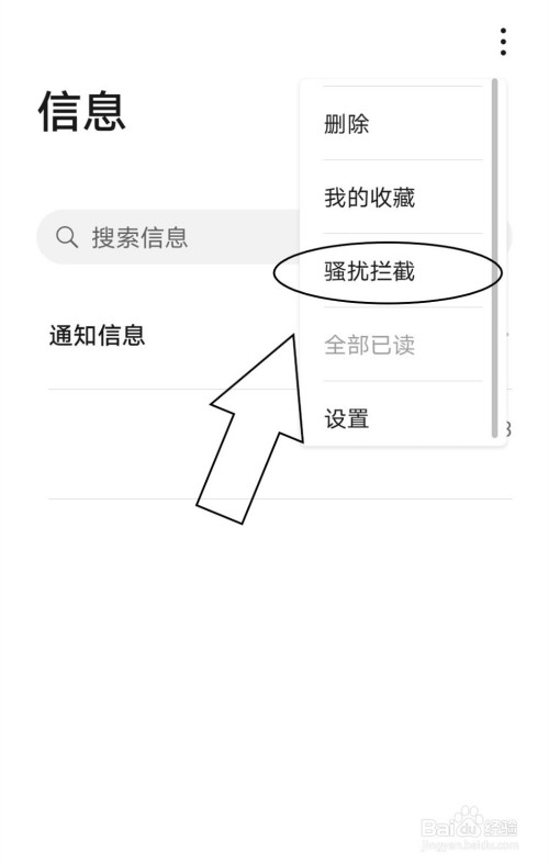 3.功能的下拉列表中选择“骚扰阻挡”。