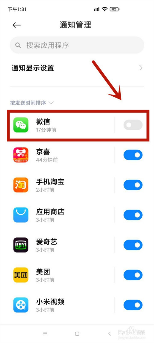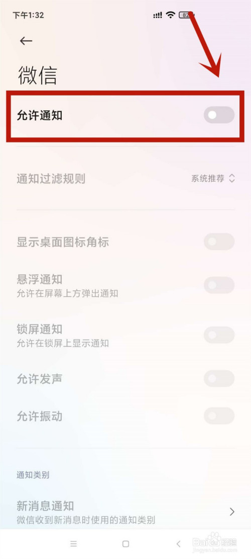 2.将微信后的按钮打开,再打开许可通知后的按钮。