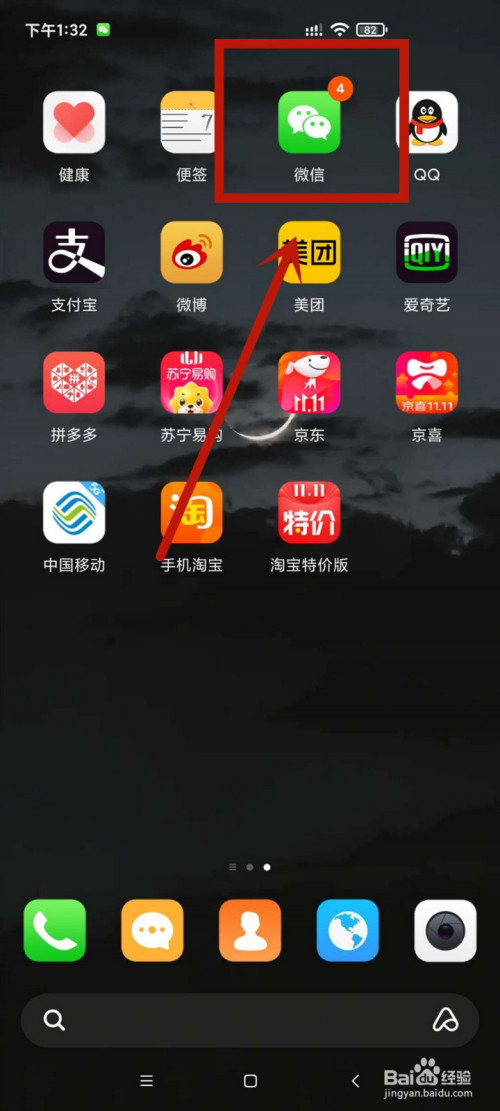 然后当我们收到微信动静时,微信图标上就会显示动静数目。