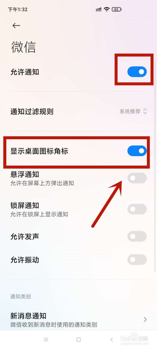 紧接着,将显示桌面图标角标后的按钮也打开。