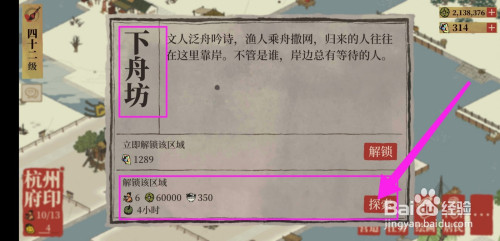 第五、点击正在摸索中的下舟坊会弹出加快页面,利用补天石便当即完当作该区域的解锁。