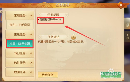 第二步,查看使命的具体动静,这个使命需要我们去不雅察宓羲村的神木