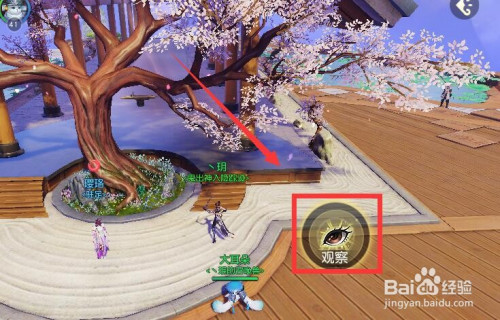 接着,接近神木的左侧的村民,点击右下角的“不雅察”按钮,查看村民的环境