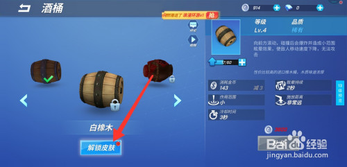 进入酒桶新皮肤白橡木页面,点击解锁皮肤;