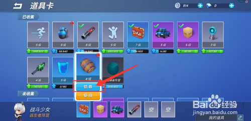 进入道具卡页面,在已收集的道具内找到并点击酒桶;