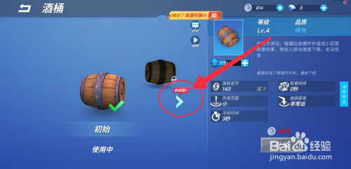 进入酒桶信息页面,将酒桶升到四级,然后点击“新皮肤”;