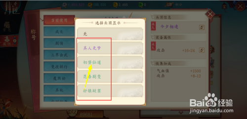 进入头顶信息选择界面后,点击需要显示的“称号”。