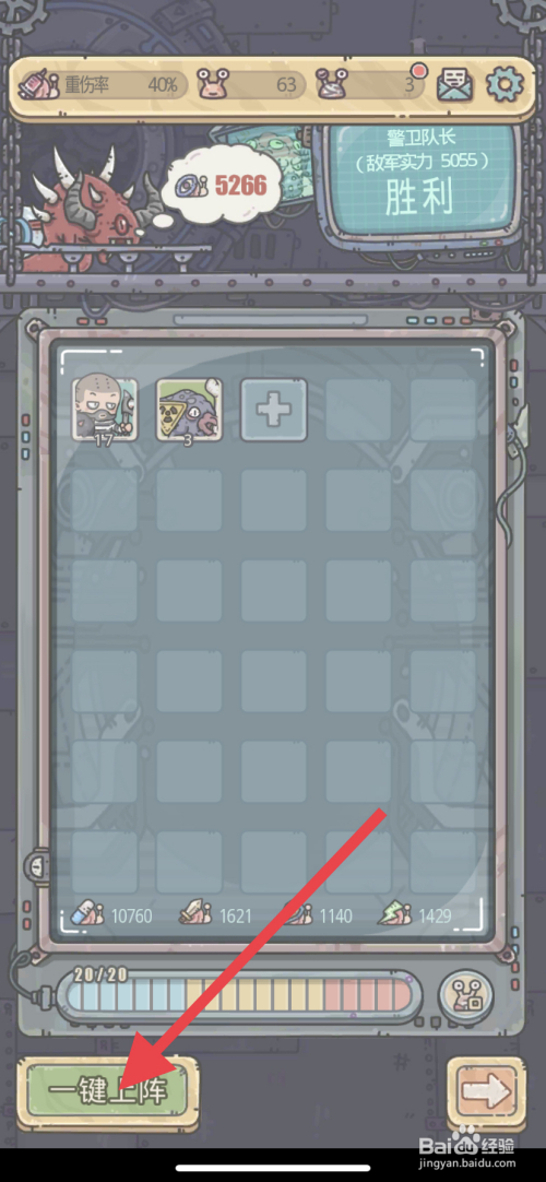 点击左下角“一键上阵”选项