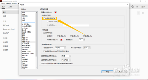 在“测量 (几何)”选项中,勾选“启用测量标识表记标帜(K)”选项的勾选开关。