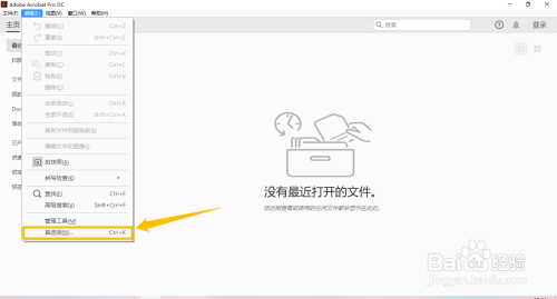 在“Adobe Acrobat DC”本家儿界面中,点击上方的“编纂(E)”菜单项。