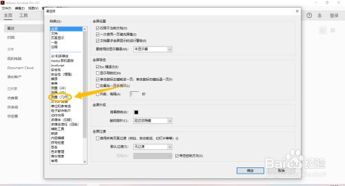 在“首选项”界面中,点击左侧的“测量 (几何)”选项。