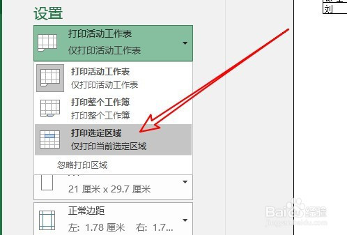 在弹出的下拉菜单中,选择打印选定区域的菜单项。