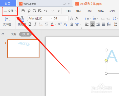 1.打开演示文稿内容,然后,点击“文件”选项。