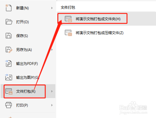 3.然后,点击“将演示文档打包当作文件夹”。