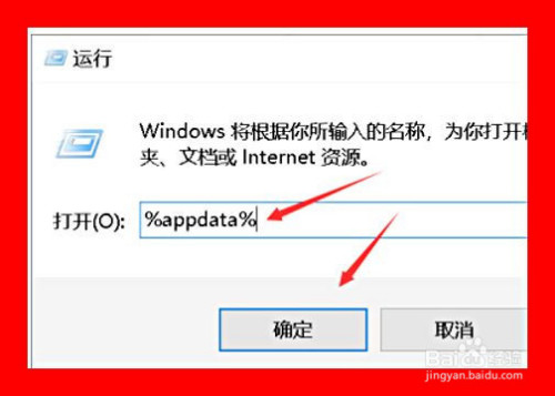 如图,我们需要在运行中输入%appdata%,然后点击确定。