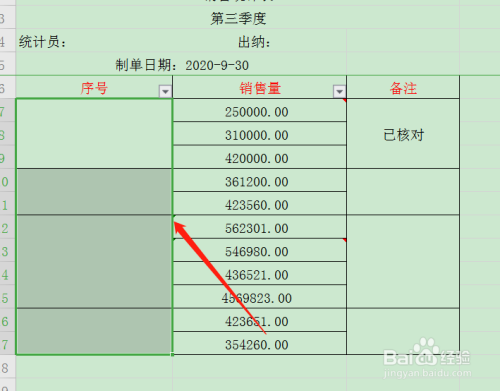 选中需要填充序号的地点列。