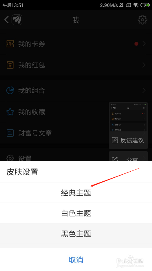 在弹出的菜单中,选择经典本家儿题。