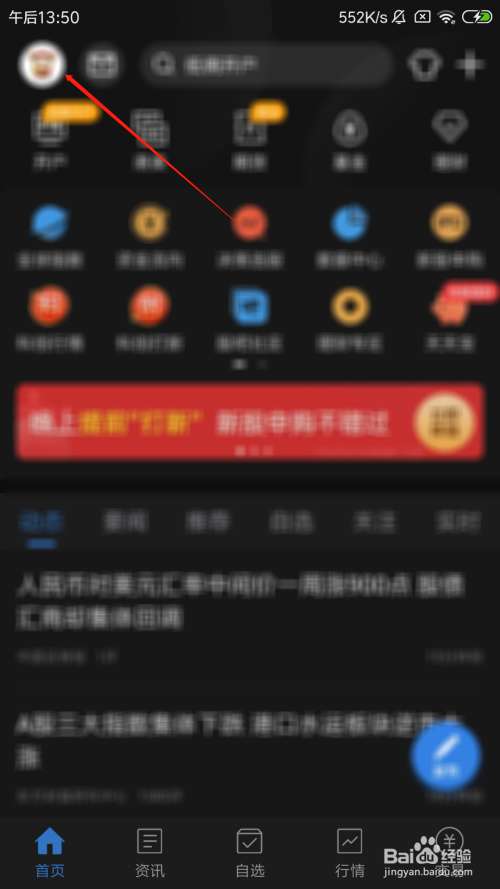 打开东方财富之后,点击左上角本身的头像。