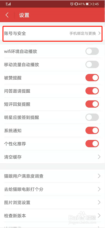 点击【账号与平安】进入