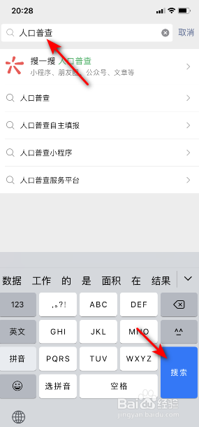 之后输入生齿普查,点击搜刮。