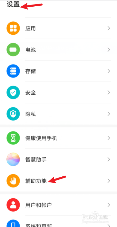 进入设置界面后再点击【辅助功能】选项。