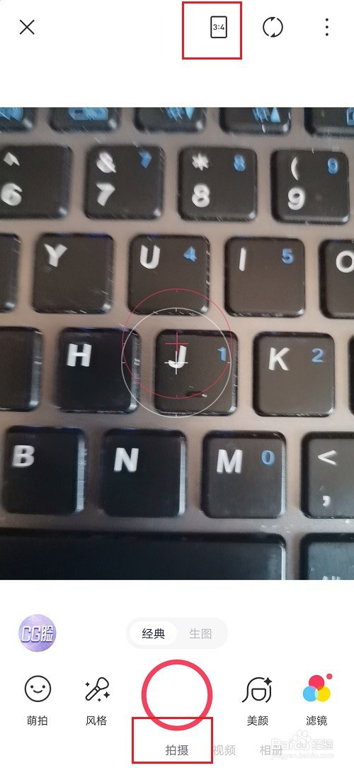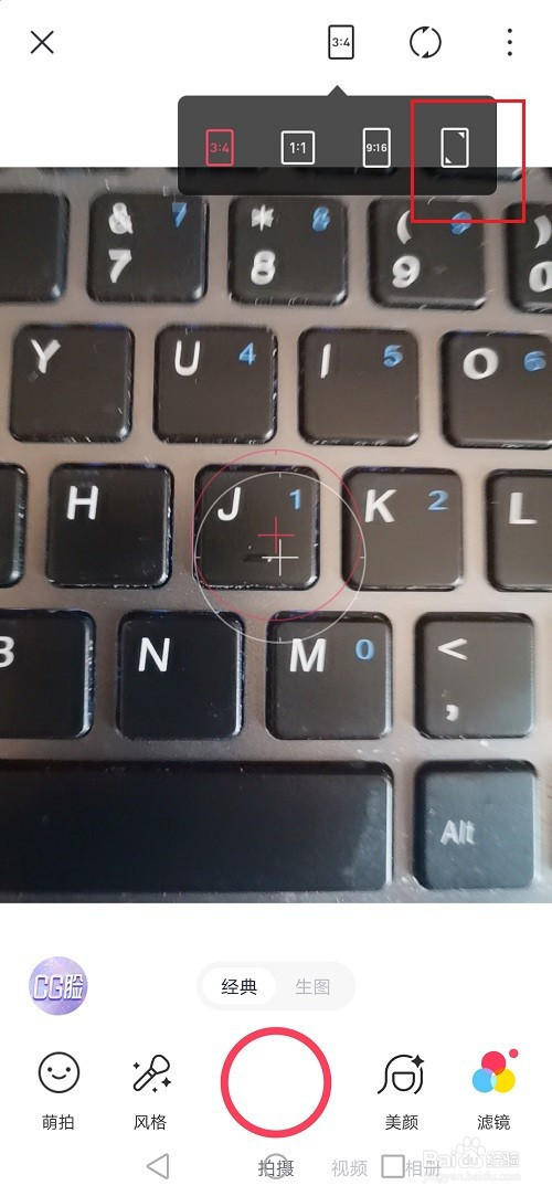 第三步进去之后,点击底部的拍摄,然后点击上方的照片比例图标