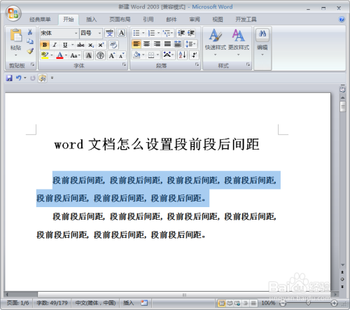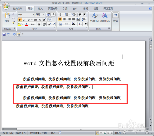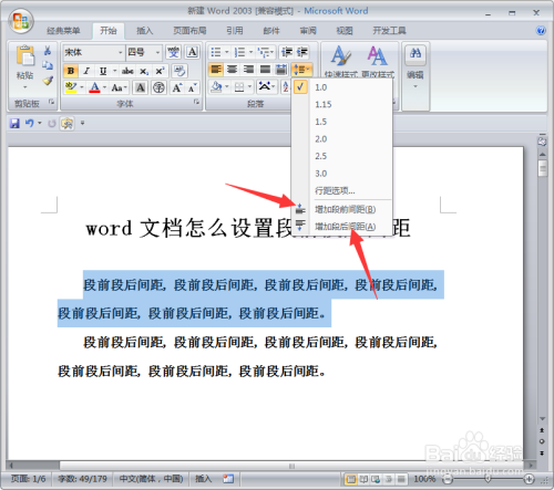 这样段后间距设置完当作了,设置段前间距,我们选择【增添段前间距】