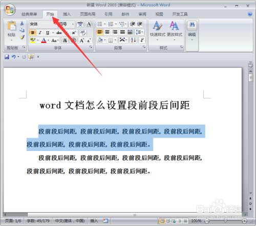 首先我们打开word文档,选中需要设置段前断后的内容