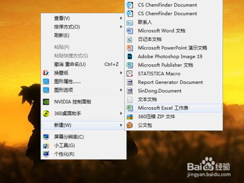 电脑桌面,单击鼠标右键,新建一个Excel表格;